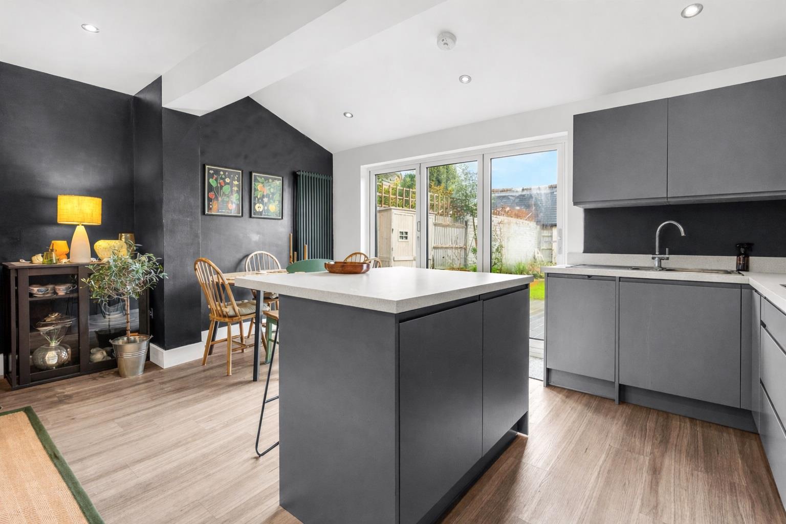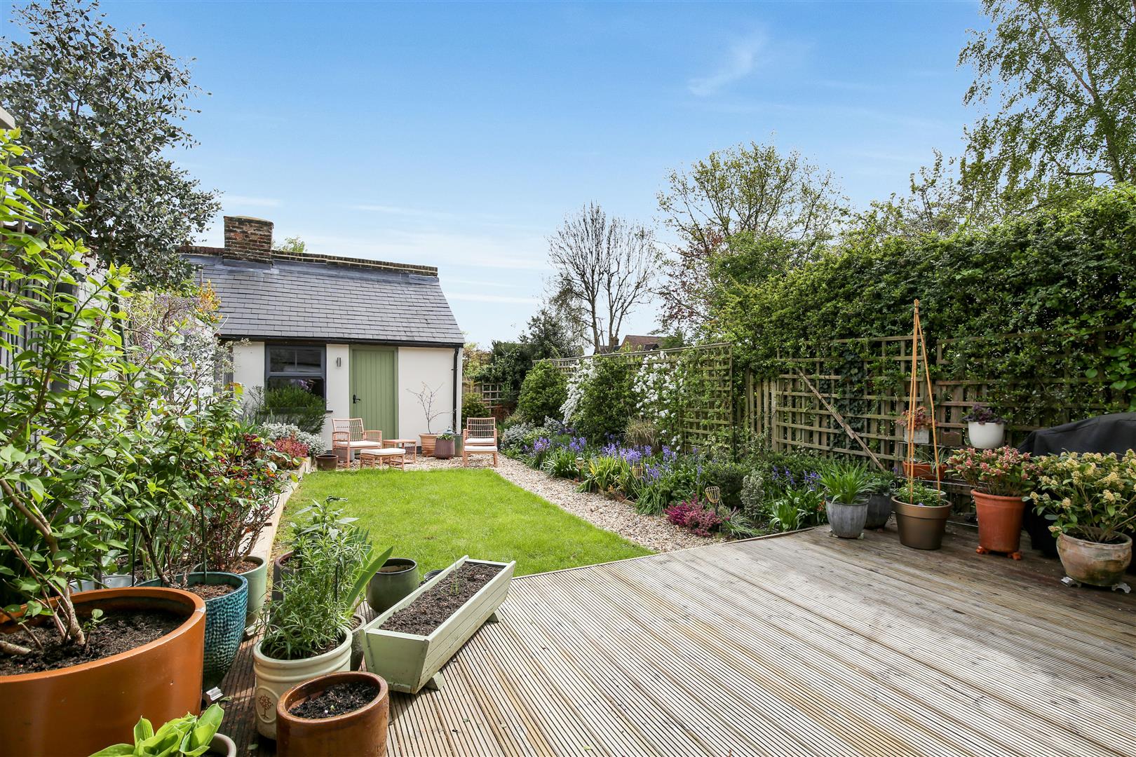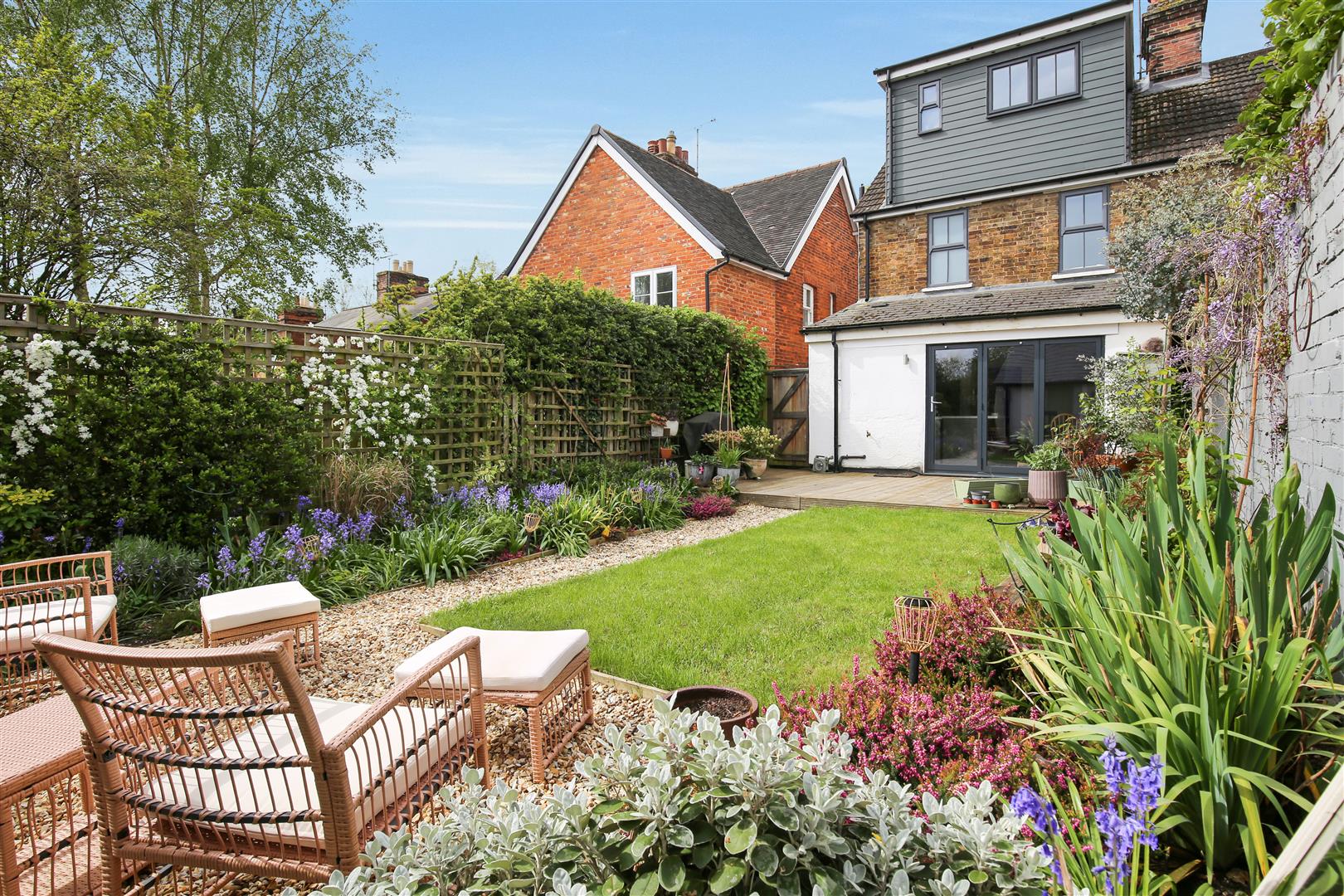 The beautifully landscaped rear garden has been thoughtfully curated to mirror the quality found throughout the property, with an expansive lawn framed by elegant, raised sleeper borders. A generous raised decking creates an inviting space for alfresco dining and entertaining, complemented by a discreet gravel pathway leading to the far end of the garden. A substantial brick-built outbuilding provides superbly versatile accommodation, ideal for a home office, studio or additional living space, while a discreet storage shed completes the setting. To the front, the property further benefits from gated side access and the highly sought-after advantage of a private driveway offering parking for two vehicles along with the added bonus of an EV charging point.