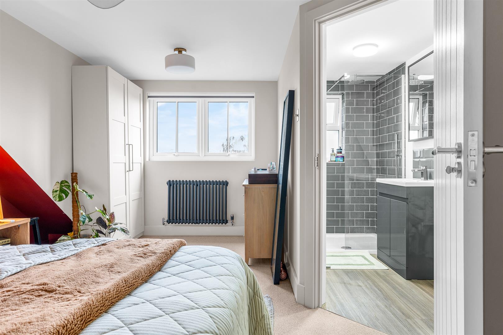 The second-floor landing reveals the superbly appointed principle bedroom, a tranquil and elegant sanctuary bathed in natural light. This luxurious suite is complemented by a private en-suite shower room, exquisitely designed to offer both comfort and sophistication, making it the perfect personal retreat at the heart of the home.